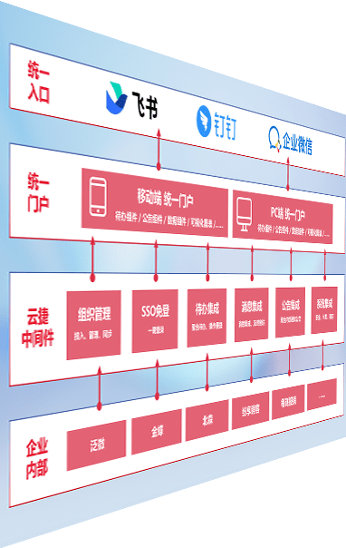 对协作平台提供支持服务,,支持企业应用与协作平台对接,,,,包含组织同步、、消息集成、、待办集成等。。支持目前主流的协作平台:钉钉、、、企微和飞书。。。